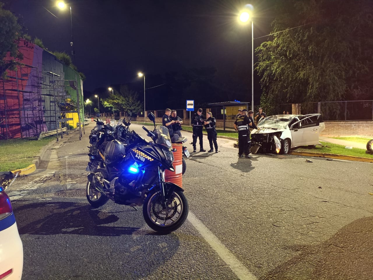 Lo que pasó después es que el conductor, de 47 años, perdió el control e impactó contra un muro de contención en la intersección de calles Nahuel Huapi y avenida J. S. Bach, donde se logró la detención.