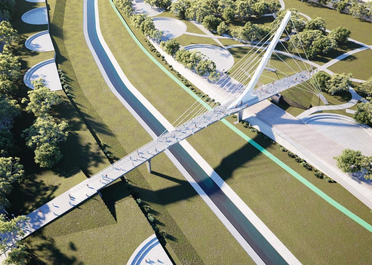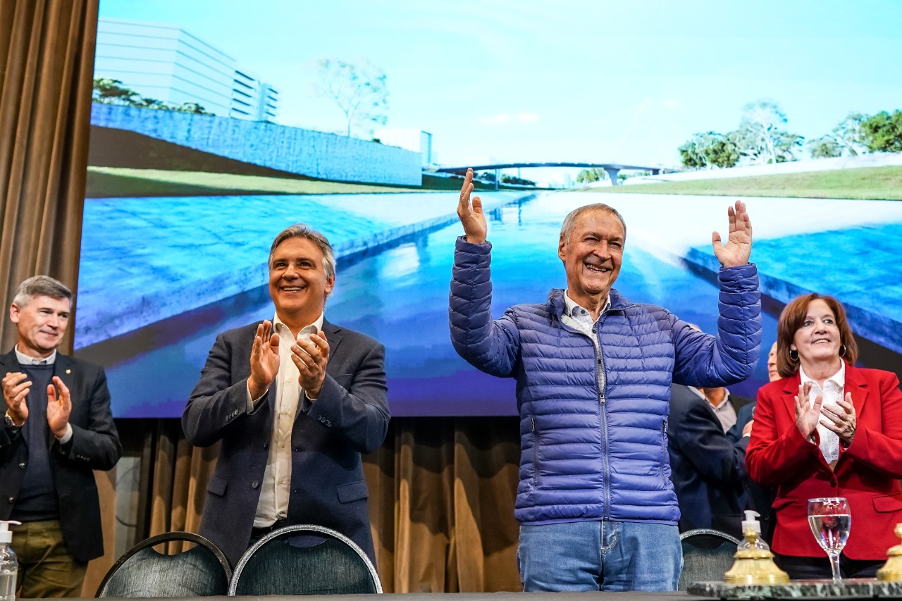 El intendente Martín Llaryora acompañó al gobernador Juan Schiaretti en el anuncio de un nuevo hito para la ciudad de Córdoba: la construcción de un puente peatonal que unirá el Parque Las Heras-Elisa con el Paseo Suquía (ex plaza Austria), entre los puentes Centenario y Antártida.