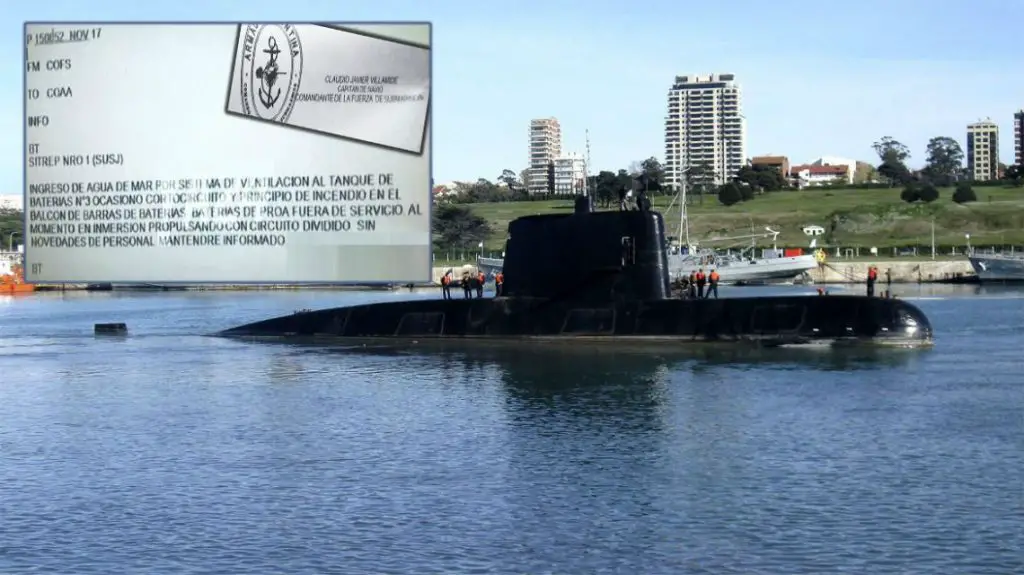 “Ingreso de Agua” e “Incendio en las baterías”, fueron las palabras claves que revelaron que el submarino ARA San Juan.