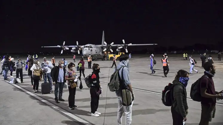 Los vuelos, que llegaron con pocos minutos de diferencia, a las 20,28 y 20,50, trajeron a 70 pasajeros cada uno, y fueron recibidos por el ministro de Defensa, Agustín Rossi; el jefe del Estado mayor del Fuerza Aérea, Xavier Isaac, y el jefe del Estado Mayor Conjunto, Juan Martín Paleo.