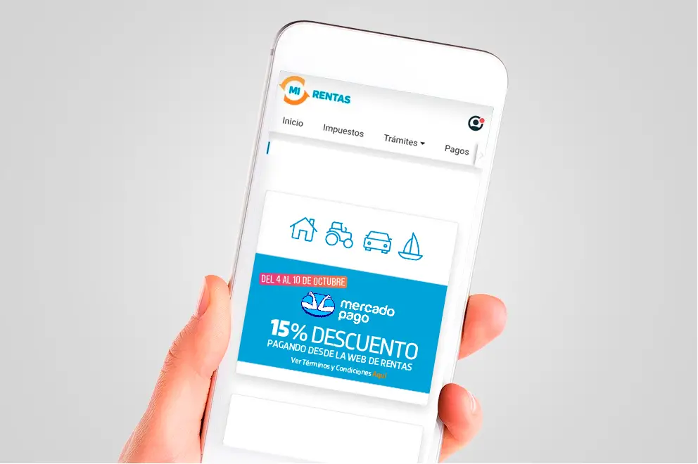 Del 4 al 10 de octubre se renueva la promo con Mercado Pago, otorgando un descuento del 15% para quienes abonen por primera vez por este medio los Impuestos Inmobiliario Urbano y Rural, Automotor y Embarcaciones.