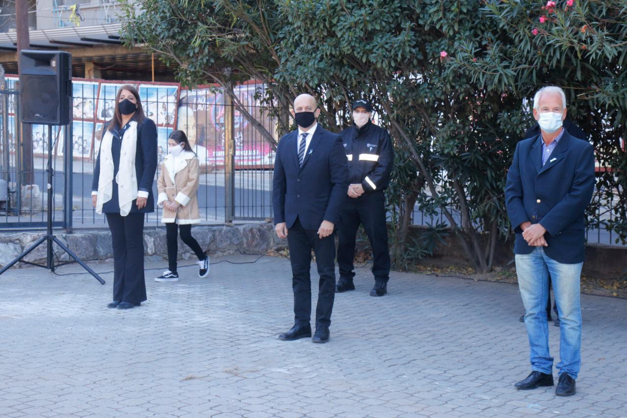Del acto, también participó el Cuerpo de Bomberos Voluntarios y músicos locales que interpretaron el Himno Nacional.
