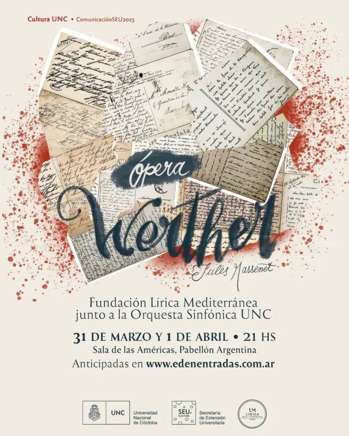 La Orquesta Sinfónica de la Universidad Nacional de Córdoba/SEU (Secretaría de Extensión Universitaria) junto a la Fundación Lírica Mediterránea, presentan el debut de la Ópera “Werther” de Jules Massenet basada en la novela epistolar de Goethe “Los sufrimientos del joven Werther”.