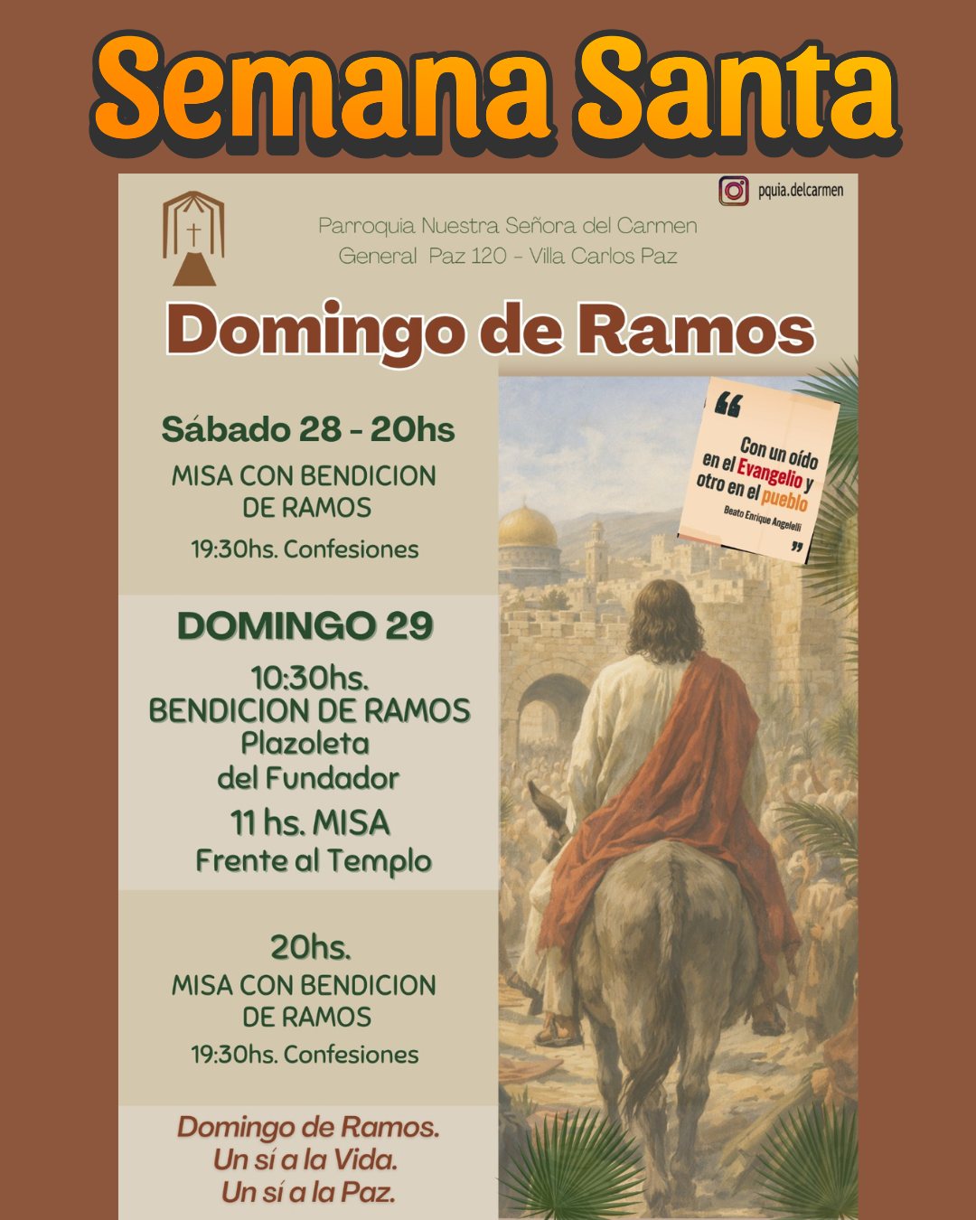 La Parroquia Nuestra Señora del Carmen presentó el cronograma de actividades por Semana Santa, con propuestas litúrgicas que se desarrollarán en distintos puntos de la ciudad y que convocan a la comunidad a participar de uno de los momentos más significativos del calendario cristiano.