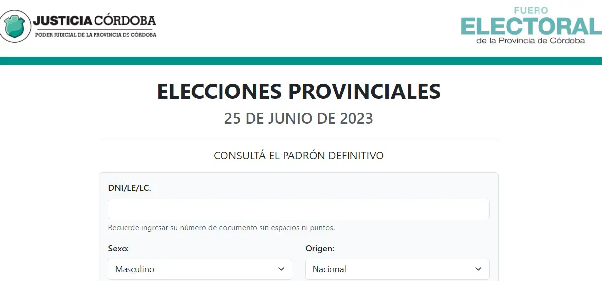 La Justicia Electoral de la Provincia puso a disposición el Padrón Electoral de manera Virtual para que sepas dónde votás este domingo tanto en Villa Carlos Paz como en el resto de localidades de la provincia donde se elige el Gobernador, Vice y legisladores además de tribunos de cuentas.