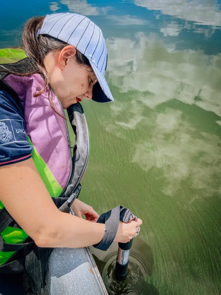“Nosotros vemos la acumulación de algas en el embalse. Desde los satélites se pueden detectar por la concentración de clorofila, con nuestros propios algoritmos a partir de mediciones de campo”, explica Anabella Ferral, docente e investigadora de la UNC y encargada del proyecto.