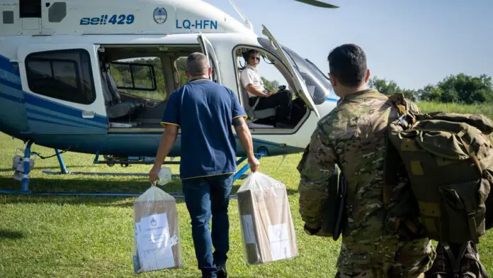 Paralelamente, desde las 7.15, tres urnas viajaron en helicóptero en un operativo especial para llegar a tres escuelas consideradas de alta montaña ubicadas en Tucumán.