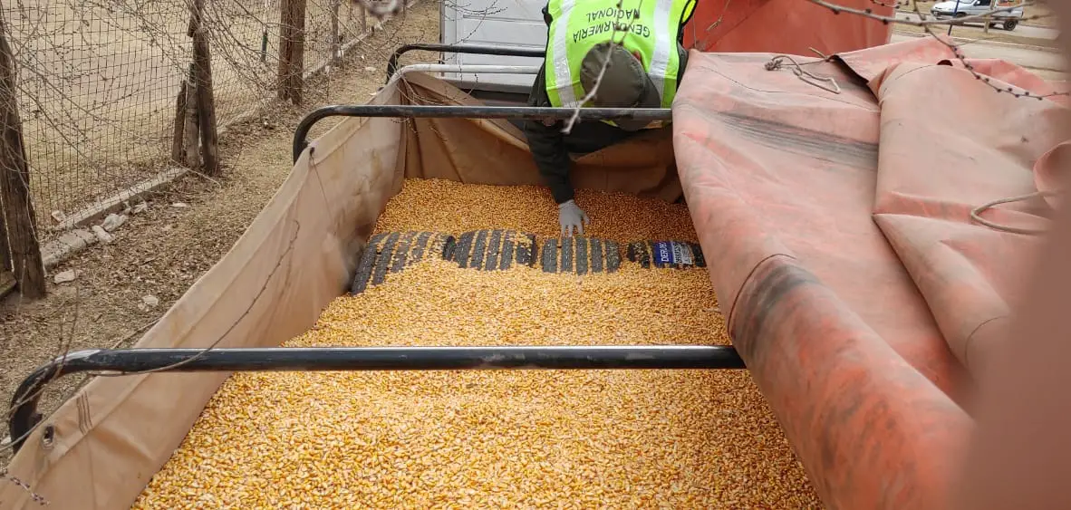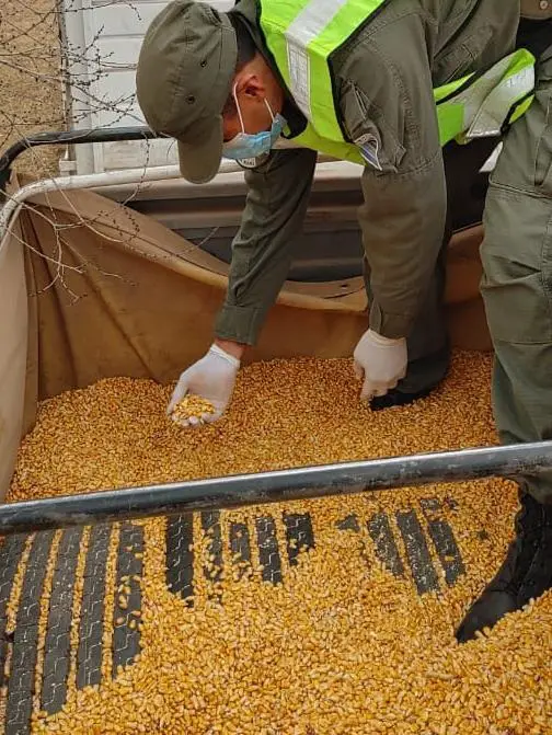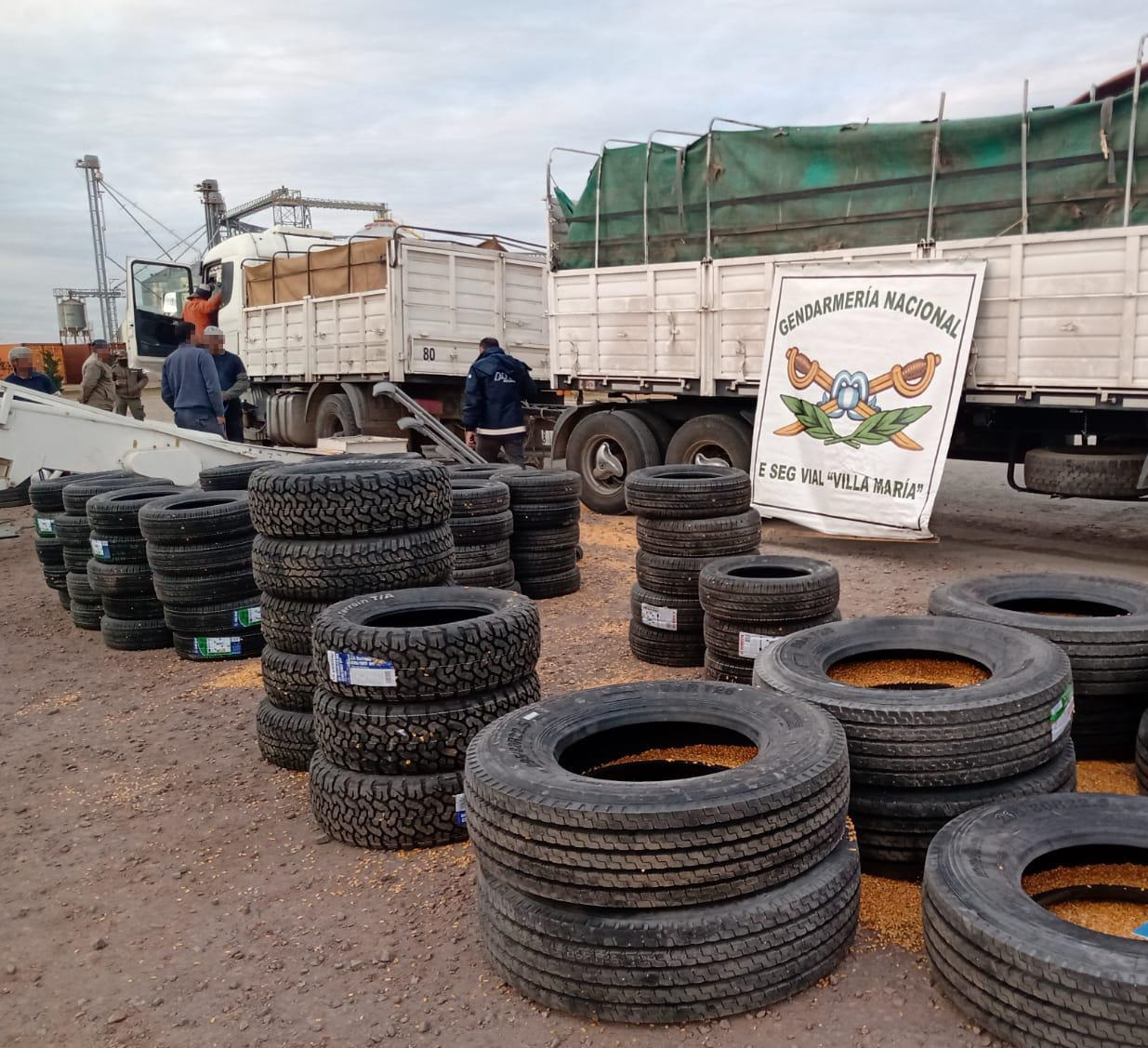 Los uniformados inspeccionaron el sector de carga observando que entre granos de maíz había neumáticos.