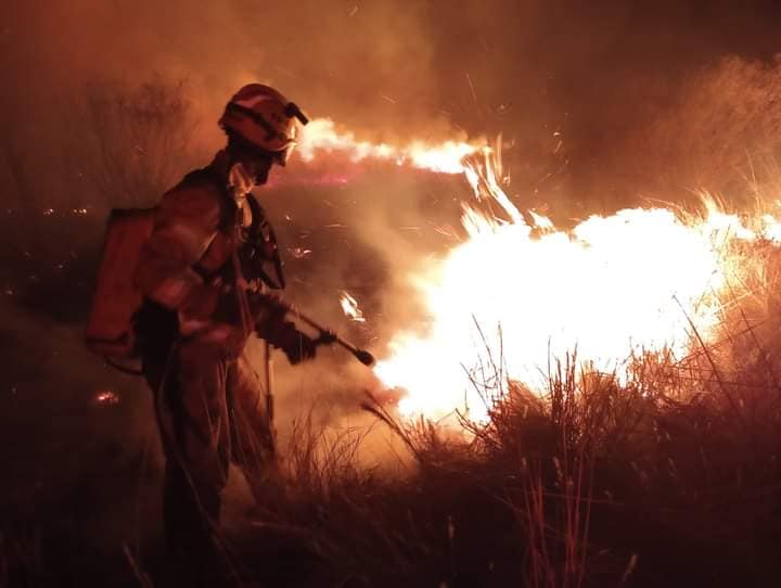 “El incendio estácontrolado, sin focos activos cuidando que no haya reinicio”, expresó el funcionario que agregó: “Trabajamos con 80 efectivos entre Bomberos, Etac, Plan del fuego y Policia”.