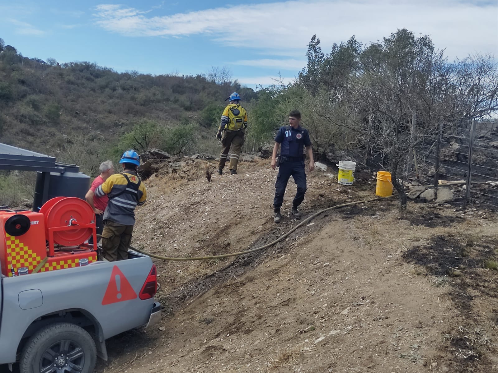 Bomberos voluntarios de la localidad junto a un avión hidrante del Plan Provincial del Manejo del Fuego trabajaron en el combate de las llamas. Además, colaboraron dotaciones de bomberos de otros tres cuarteles de la región y personal del Equipo Técnico de Acción ante Catástrofes.