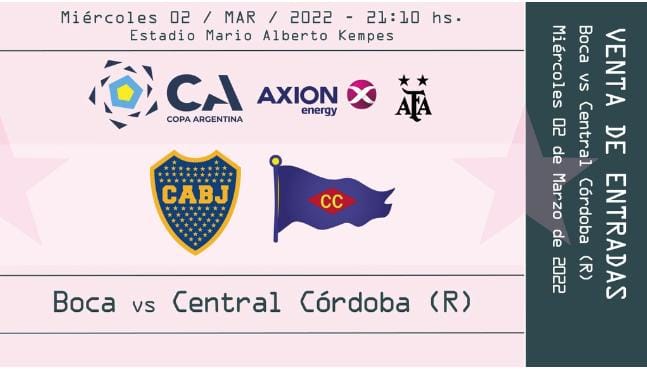 El encuentro entre el campeón Boca y Central Córdoba de Rosario se disputará el próximo miércoles desde las 21.10 hs en el estadio Mario Alberto Kempes de Córdoba y corresponde a los 32avos de Final de Copa Argentina.