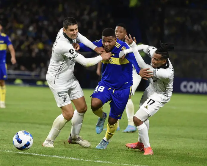 Boca, en crecimiento de funcionamiento y entonado por la reciente obtención de la Copa de la Liga Profesional, salió a buscar la imprescindible victoria sobre los colombianos con un buen despliegue de sus líneas, abriendo la cancha y jugando por tiempos a controlar el balón y jugar directo.