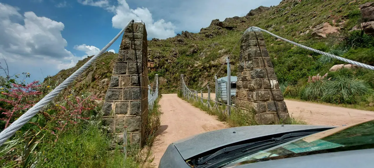 Dos hosterias, paradores o albergues… le están dando vida a este caserío que está a metros del primero de los 5 míticos ‘Puentes Colgantes’. Allí veo un cartel de una de las posadas que reza orgulloso ‘desde 1936’. Imaginen ese año, ese invierno, en este sitio. Imposible no parar a repararse para la trepada violenta que se viene hacia la Pampa de Achala.