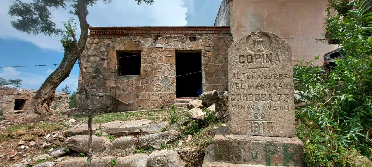Intacto, algo inclinadito, con su leyenda del año 1915 y la altura sobre el mar: 1448… también las distancias a Córdoba y a Mina Clavero. ¿Y Carlitos Paz?!? Estaba en pañales de estancia aún.