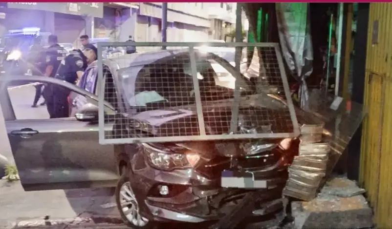 El conductor chocó contra la vidriera de un local comercial y luego contra el portón de una playa de estacionamiento colindante.