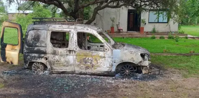 El incendio ocasionó daños parciales en la vivienda, como también la quema total del vehículo utilitario que se encontraba en el domicilio.