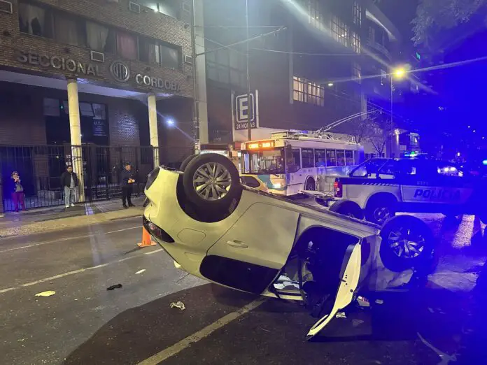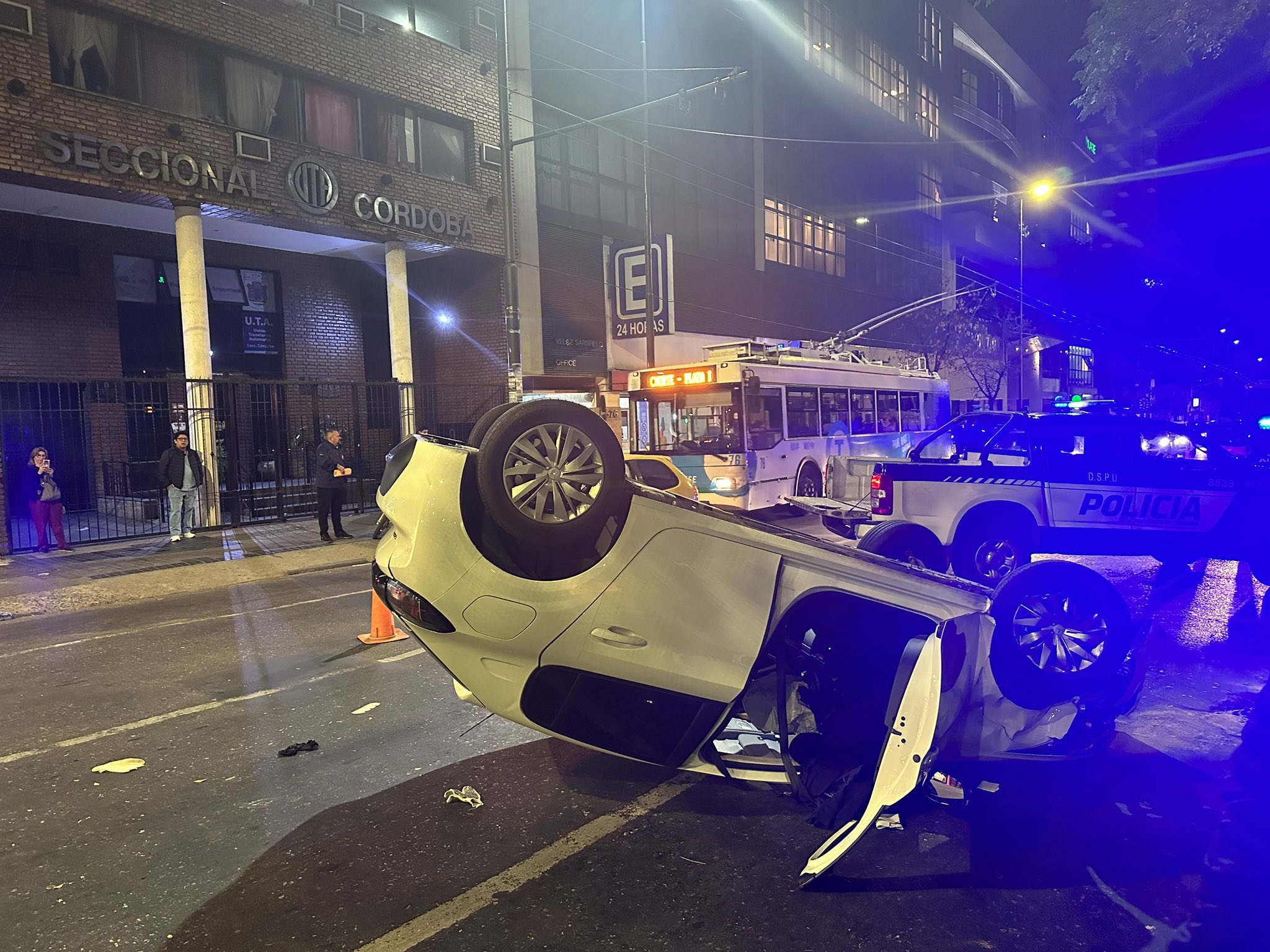 Un auto protagonizó un espectacular accidente esta madrugada a pocos metros del Patio Olmos, pleno centro de la ciudad de Córdoba.