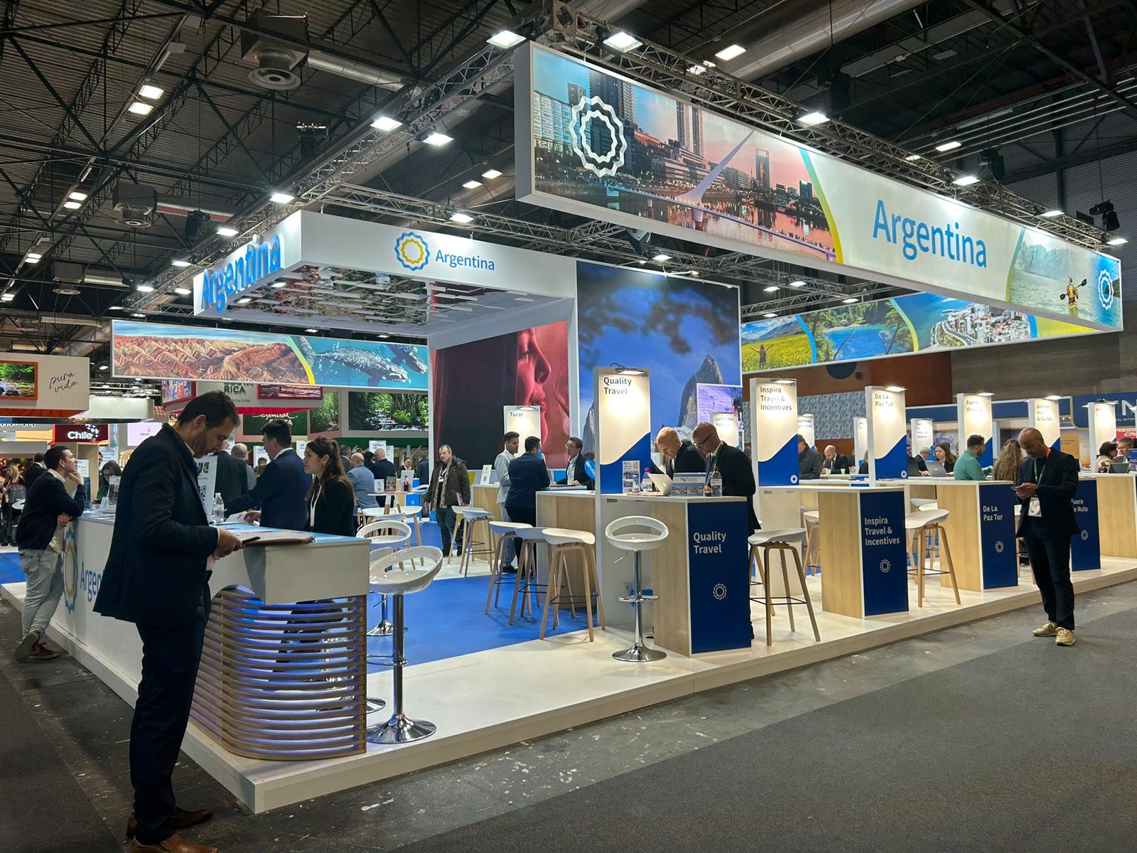 En el stand de Argentina, Córdoba se destaca por su amplia oferta turística que incluye turismo médico, de salud y bienestar; deportes extremos y golf; ecoturismo y turismo rural; los Caminos del Vino y del Olivo; rutas escénicas y el legado jesuítico. Además, se resalta el Camino de Brochero como una propuesta cultural e histórica única, junto con los festivales y el turismo MICE, que refuerzan la diversidad y riqueza de la provincia.