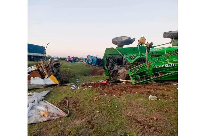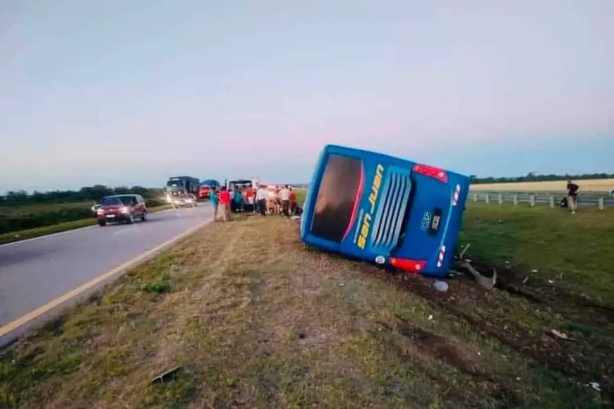 El organismo de seguridad local informó que el micro de la Empresa San Juan transitaba por la ruta y, que por razones aún no establecidas, impactó contra una máquina agrícola. Como consecuencia del impacto el colectivo volcó.