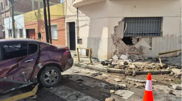 El siniestro ocurrió alrededor de las 6 de la mañana en la esquina de Deán Funes y pasaje Antonio Navarro. Por motivos que aún son materia de investigación, el joven que conducía un Renault Symbol bordó perdió el control e impactó de lleno contra la casa de la esquina, provocando daños importantes en la pared.