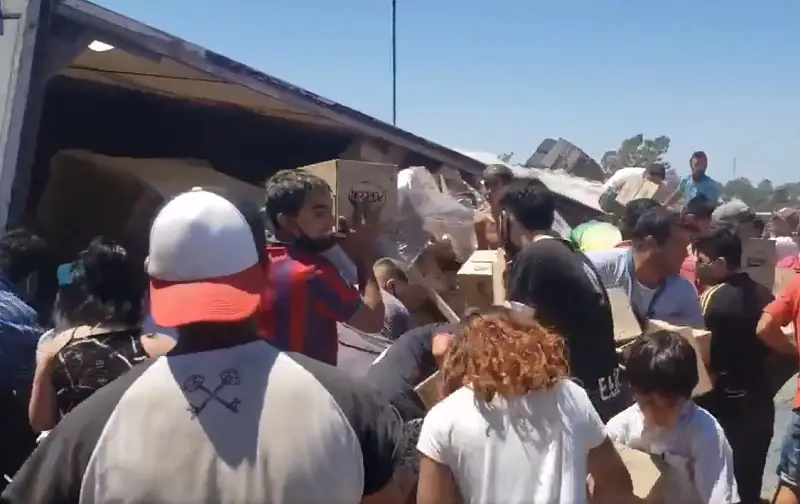 El hecho, que ocurrió a la altura de Villa El Nylon, en principio no tomó grandes dimensiones porque no hubo heridos; pero el problema se produjo cuando, de repente, empezó a acercarse gente y al ver que se trataba de alimentos, comenzaron a saquear la carga.
