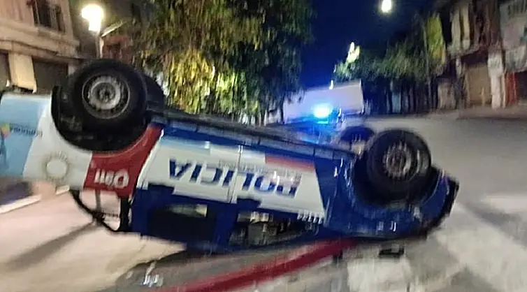 Como consecuencia del choque, el patrullero terminó volcado sobre la carpeta asfáltica. A pesar de la espectacularidad del siniestro y los daños materiales, la camioneta sospechosa no detuvo su marcha y continuó la huida hacia la zona norte.