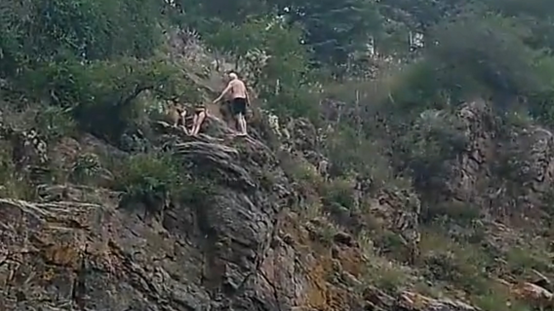 En el clip publicado en la red social de videos cortos se puede ver cómo Frascasoli, a pesar a su avanzada edad, trepa por las piedras de la rivera del Río Santa Rosa hasta llegar a un buen lugar donde acomodarse para realizar el salto ornamental.
