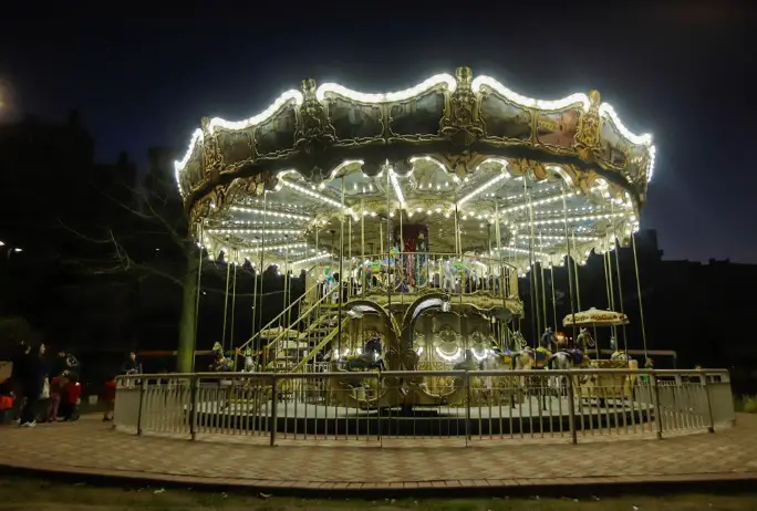 El carrusel tiene dos niveles, y se puede acceder al más alto por una escalera.