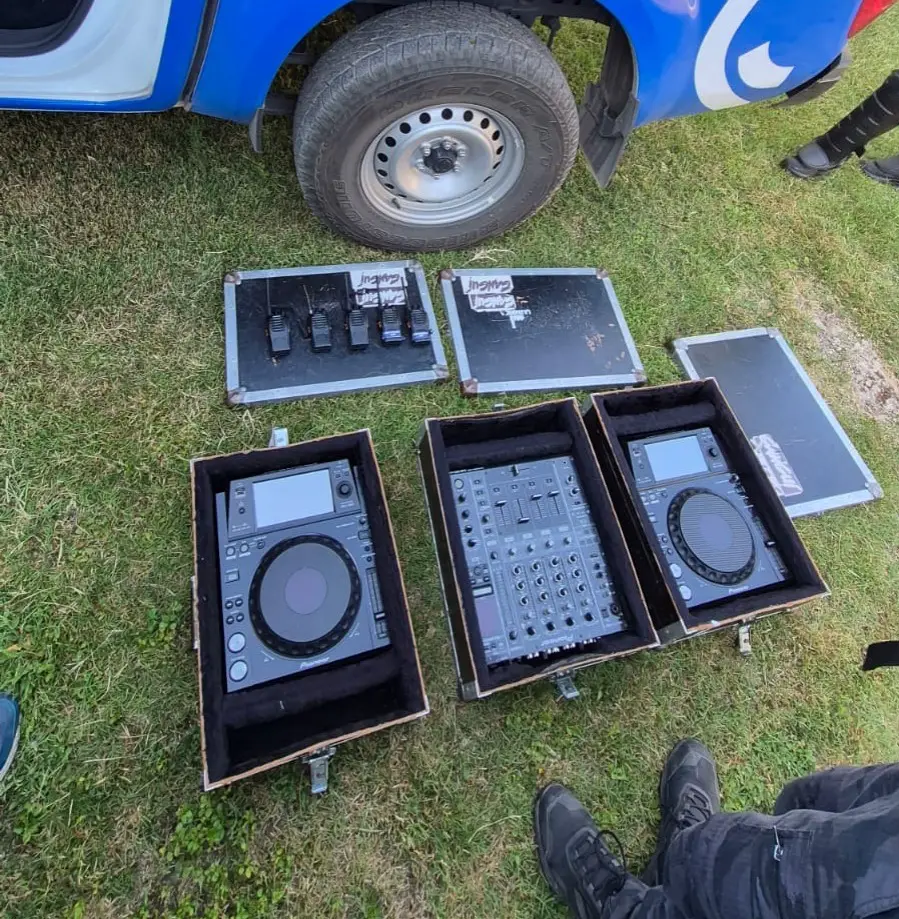 Como consecuencia, las autoridades dispusieron la inmediata interrupción de la fiesta y el secuestro de diversos elementos, entre ellos equipos de comunicación, consolas de sonido y parte de la estructura del escenario, utilizados para el desarrollo del evento.