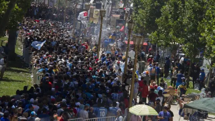 Cuando restan poco menos de tres horas para que termine el último adiós a Diego Armando Maradona, miles de personas quedaron afuera del perímetro. Los primeros disturbios se registraron pasadas las 14.