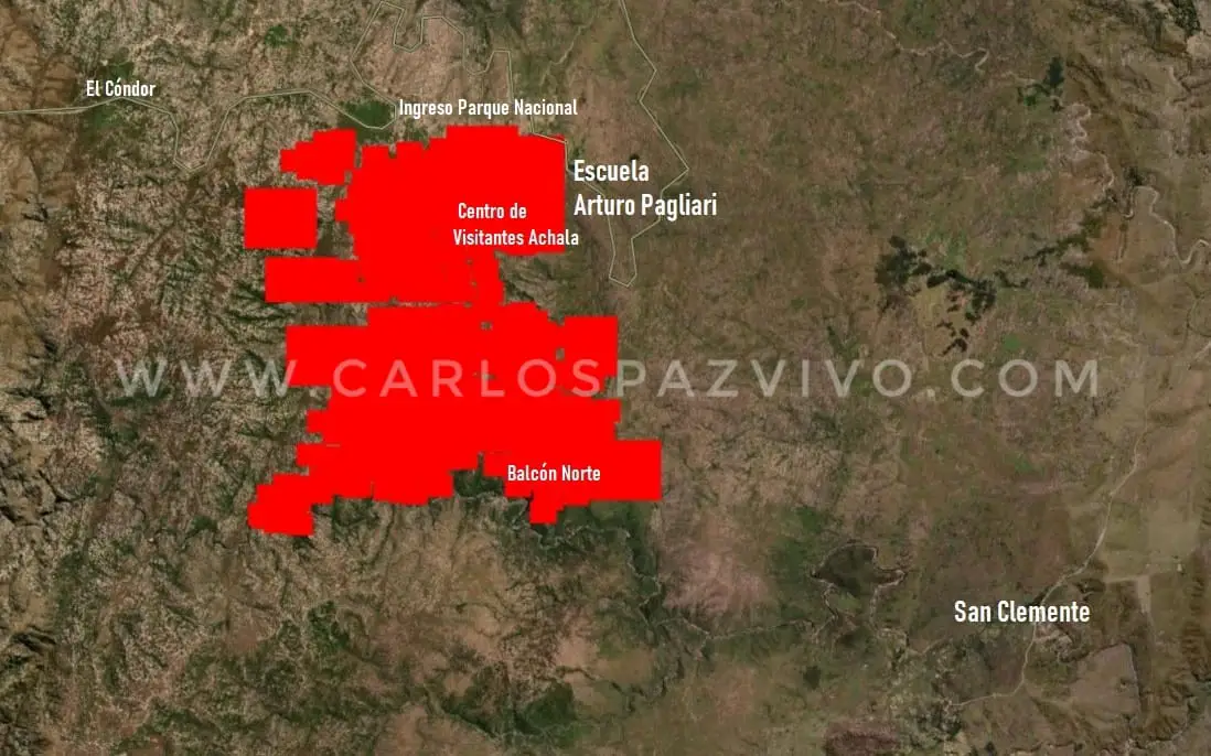 La Policía Caminera dispuso el corte total del Camino de las Altas Cumbres como medida preventiva para permitir el trabajo de las brigadas y evitar riesgos en la circulación. Según el mapa del área afectada área afectada se extiende desde el sector La Pampilla (acceso al Parque Nacional), hasta el Balcon Norte, con bordes activos que avanzan impulsados por viento fuerte, alta temperatura y baja humedad.