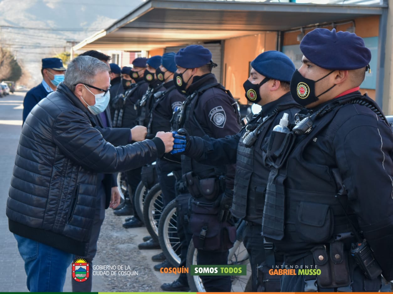 En la mañana de este viernes, el intendente de Cosquín, Gabriel Musso, junto a funcionarios de diversas áreas del municipio y el Director de la Departamental Norte de la Policía de la provincia de Córdoba, el comisario Mayor, Diego Bracamonte, recibieron al personal de Motocicletas del Grupo E.M.E de Punilla que cuentan con equipos de comunicación portátiles de última tecnología para el control de seguridad en la vía pública.