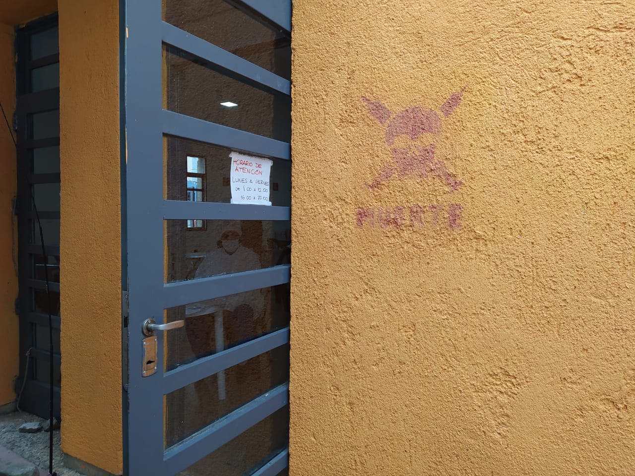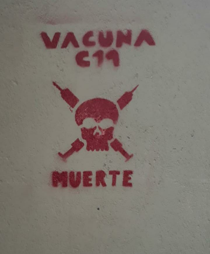 Este viernes por la mañana, en Cosquín, en el vacunatorio de la Plaza Prospero Molina abocado a la campaña de inmunización Covid-19 (esquina de Obispo Bustos y Tucumán), aparecieron pintadas con el símbolo de la muerte, que los trabajadores del lugar definieron como “ bastante desagradables”.