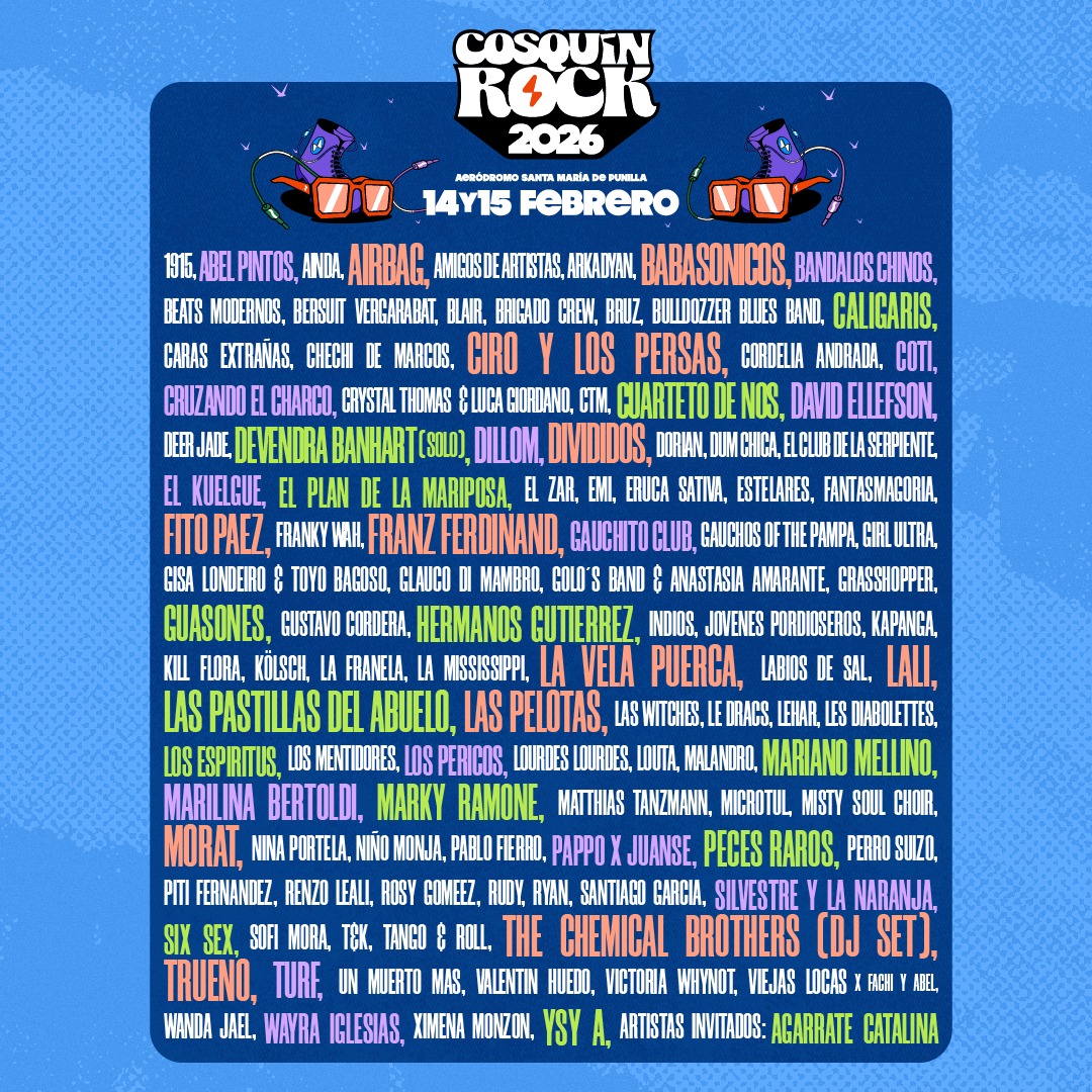 El festival de música más importante del país y de Latinoamérica, Cosquín Rock, acaba de anunciar la esperada grilla completa de su edición 26, que se llevará a cabo el 14 y 15 de febrero de 2026 en el Aeródromo de Santa María de Punilla.