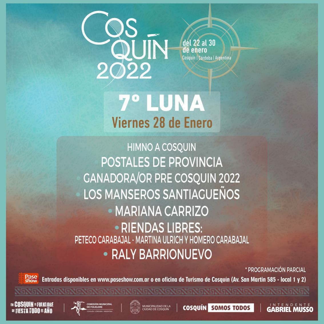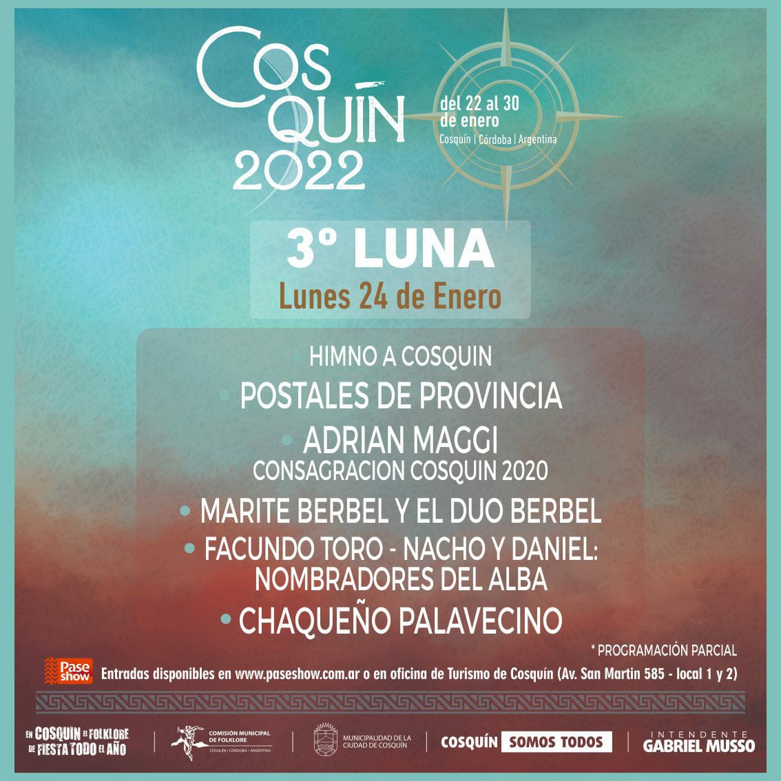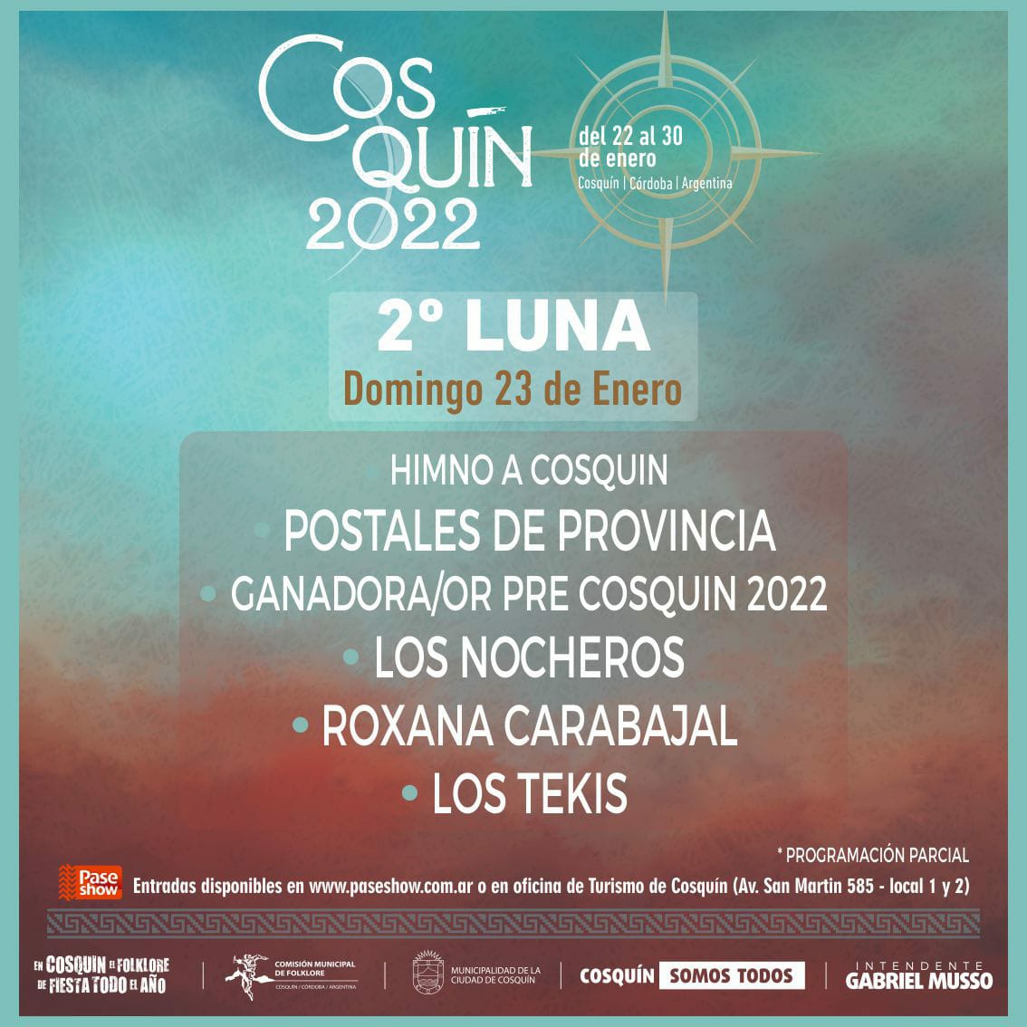 El Festival Nacional de Folklore de Cosquín vuelve con todo luego de suspender la edición 2021 por la pandemia y, este miércoles, confirmó las fechas y oficializó la grilla de artistas que estarán musicalizando cada una de las lunas de la Plaza Próspero Molina.