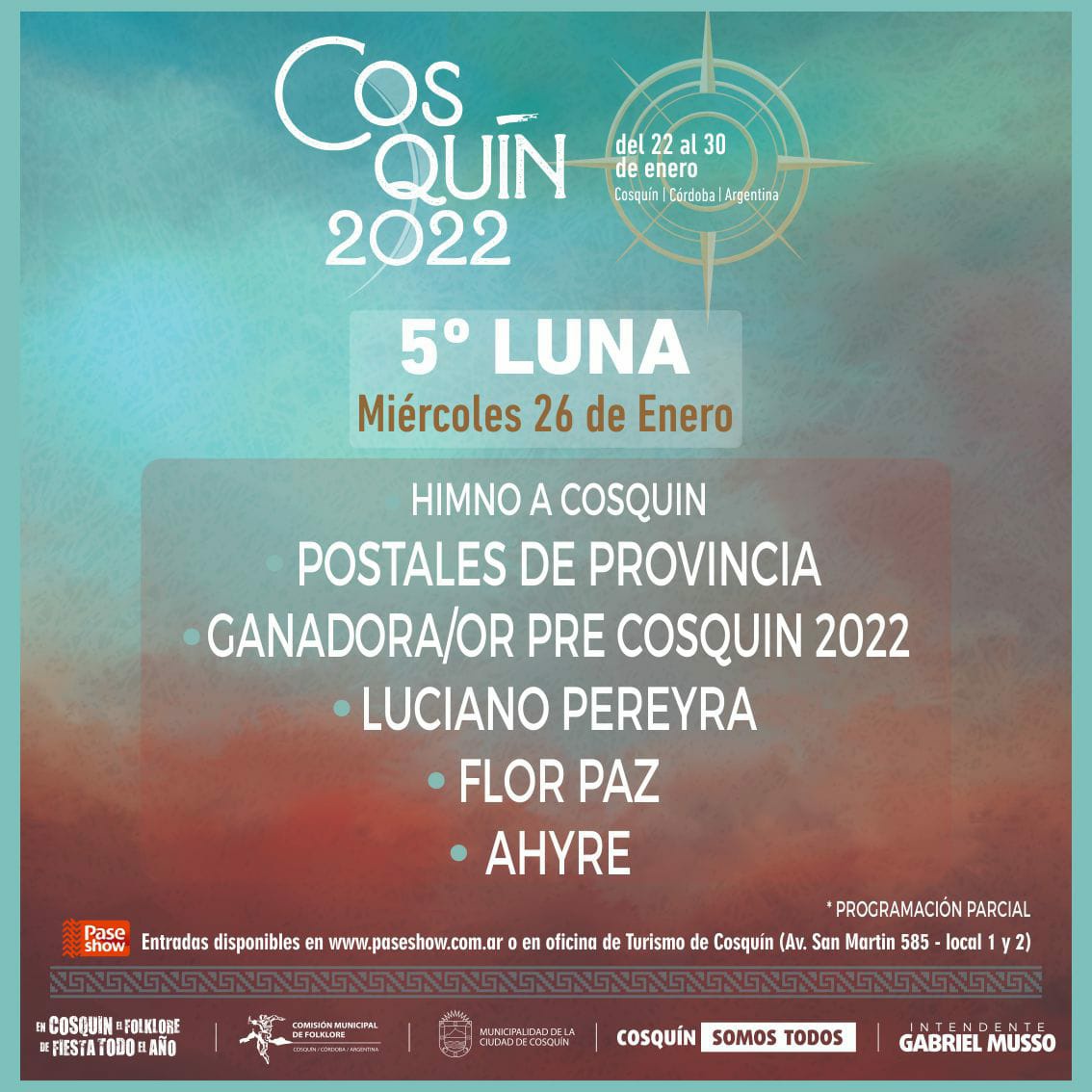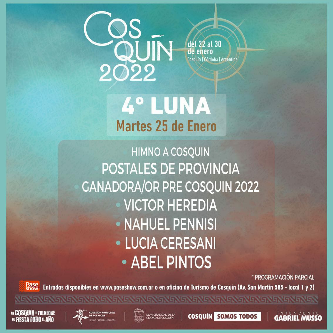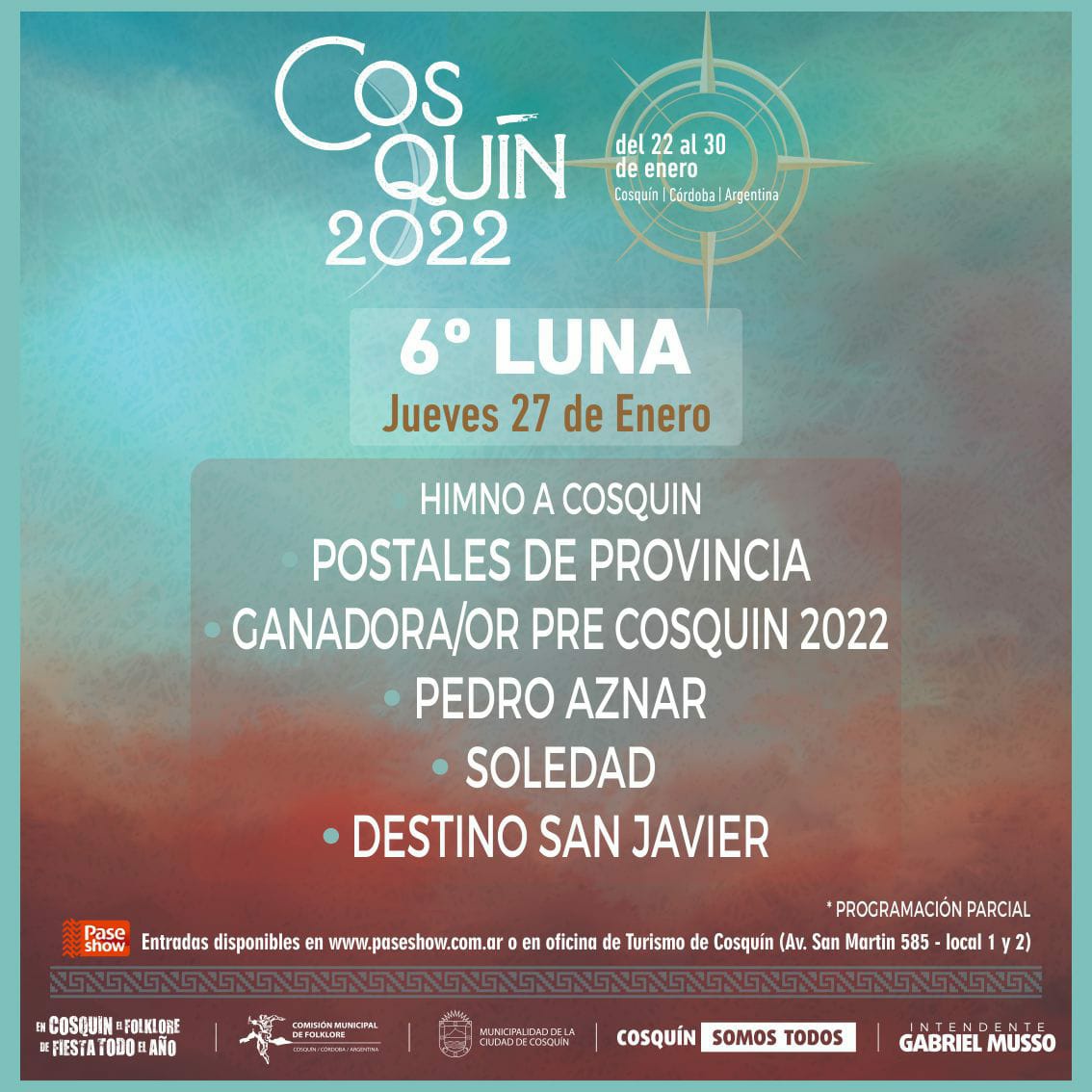 El Festival Nacional de Folklore de Cosquín vuelve con todo luego de suspender la edición 2021 por la pandemia y, este miércoles, confirmó las fechas y oficializó la grilla de artistas que estarán musicalizando cada una de las lunas de la Plaza Próspero Molina.