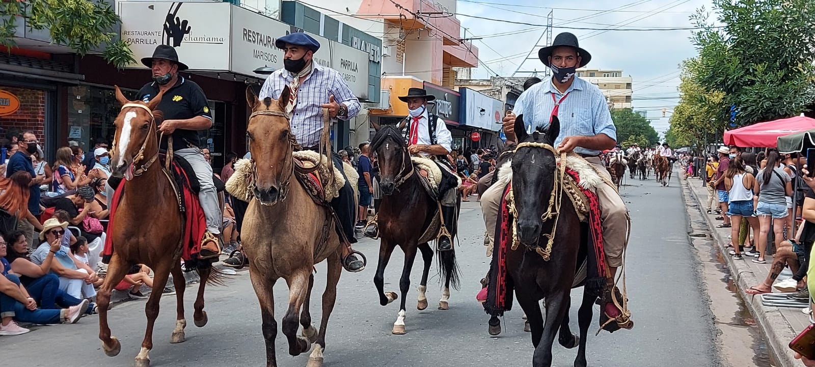 Vecinos y visitantes se apostaron sobre las veredas de avenida San Martín, entre la plaza homónima y la Próspero Molina, porque desde el mediodía allí fue el punto neurálgico donde se realizó el tradicional desfile gaucho.