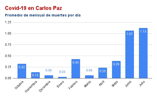 Hasta el momento, sólo en lo que va de julio, se confirmaron 256 casos positivos, lo que representa un promedio diario de 32 contagios. En tanto, ya son 9 las personas que fallecieron; es decir, más de una muerte por día.