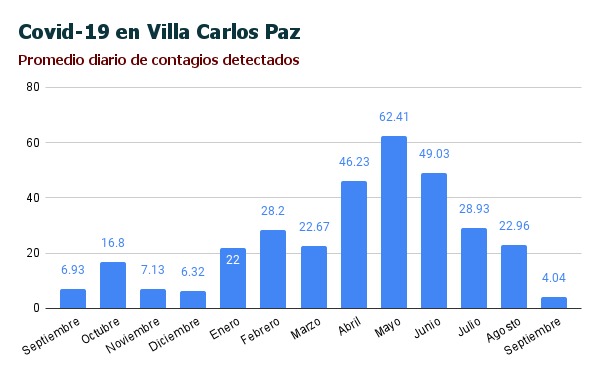 En lo que va del mes de septiembre, se dieron a conocer 89 nuevos contagios por coronavirus. Actualmente se produce un promedio de 4,04 casos por día, por lo que la tasa de contagios continúa descendiendo en la ciudad.