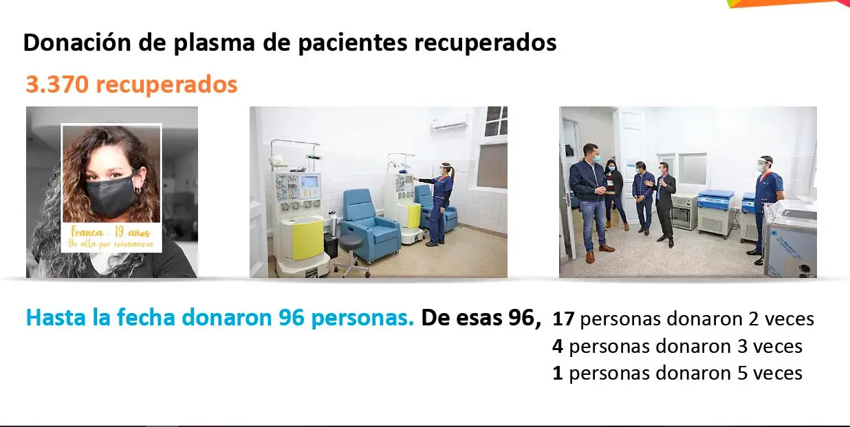 Un dato llamativo es que de los 3370 pacientes recuperados, donaron plasma solo 96 personas para el tratamiento de enfermos en estado crítico.