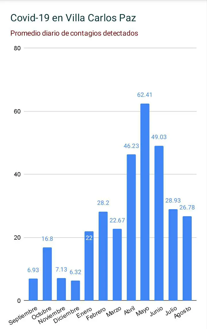 Este lunes se confirmaron 29 nuevos casos de Covid-19 en Villa Carlos Paz; lo que representa un marcado descenso de casos, ya que el informe corresponde a los contagios acumulados durante todo el fin de semana. Además, se cumple una semana desde que se registró el último fallecido como consecuencia del coronavirus.