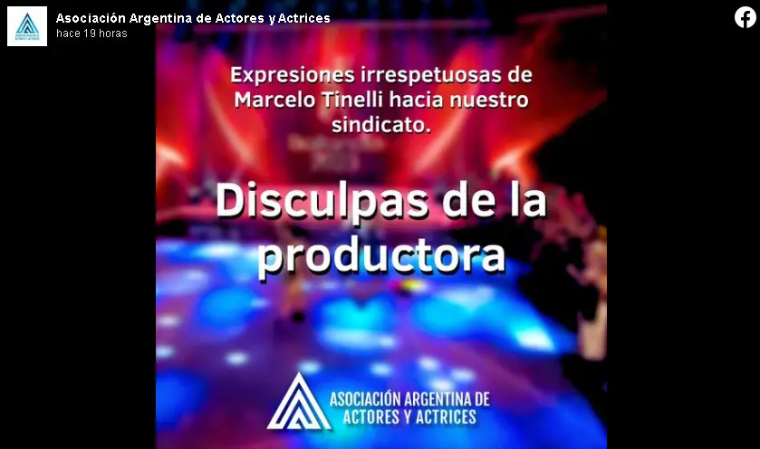 La Asociación Argentina de Actores y Actrices (AAA) calificó de “lamentables” e “irrespetuosas” las expresiones de Marcelo Tinelli acerca del sindicato durante la emisión de “Bailando 2023”, por América, cuando el conductor se quejó porque parte del cuerpo de bailarinas del programa bailaba a un costado de la pista y no sobre ella como el resto.