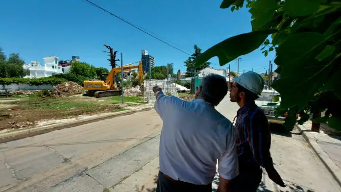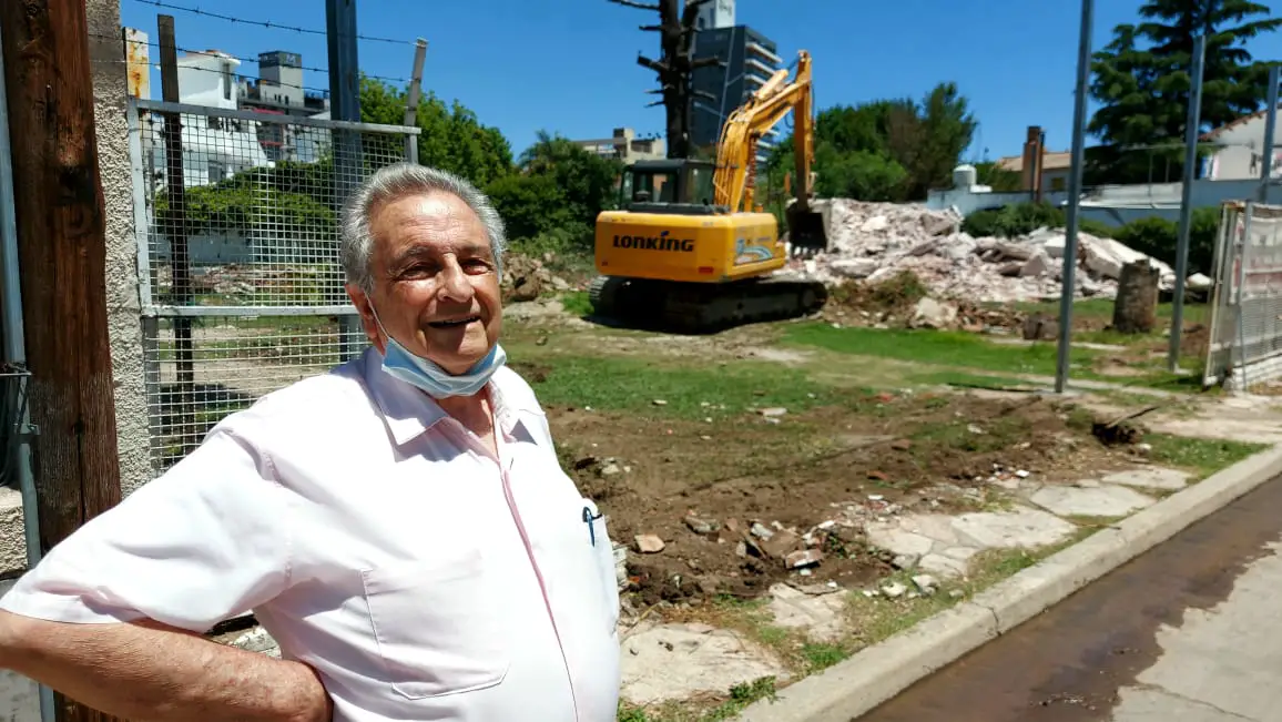 El trío (si me cuento yo, mudo testigo) se completa con el trabajador de la empresa desarrollista Grupo Fonte, centinela en este derribo, que lo escucha a Scrosatti, respetuoso, a la sombra de un árbol de la acera del frente.