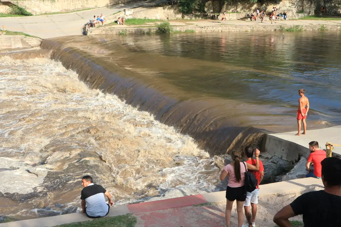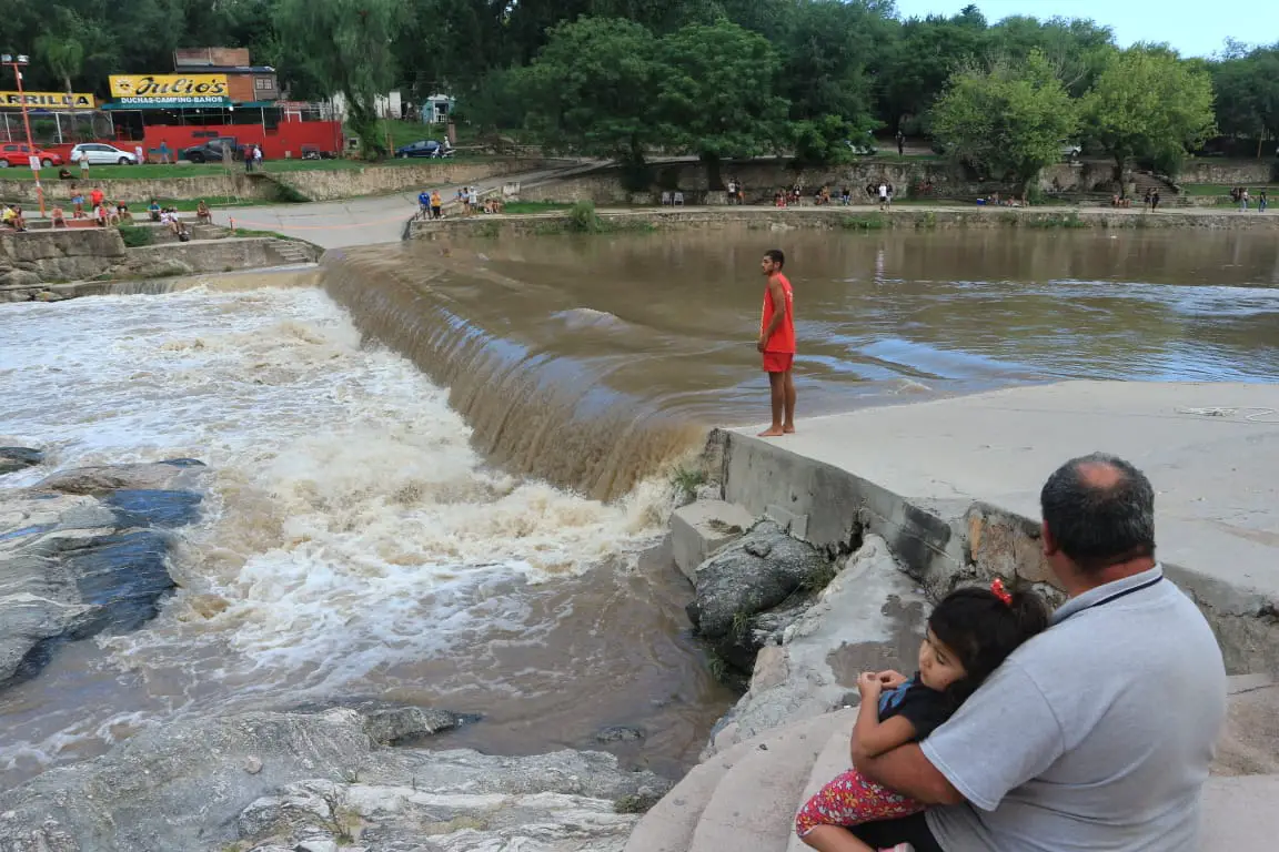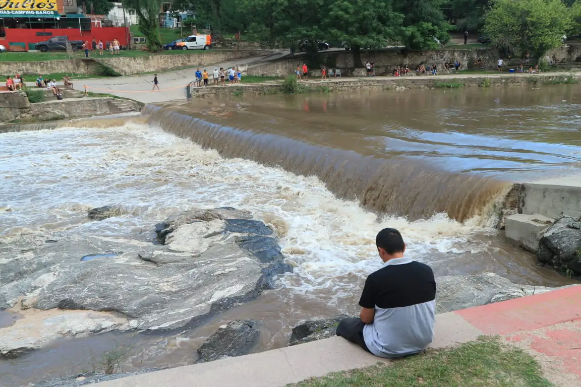 Los turistas y vecinos vivieron la llegada de la creciente del San Antonio como un espectáculo aparte en esta jornada en la que después de la lluvia volvió a salir el slo en Carlos Paz.