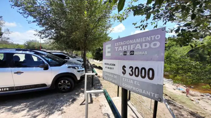 El costo del estacionamiento que se paga al ingresar a la calle del río asciende a los 3.000 pesos.