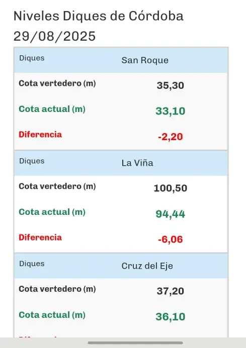 Con este caudal adicional, el lago San Roque mostró un repunte de 77 centímetros y este lunes 1° de septiembre alcanzó los 33,87 metros, frente a los 33,10 metros que presentaba el viernes 29 de agosto.