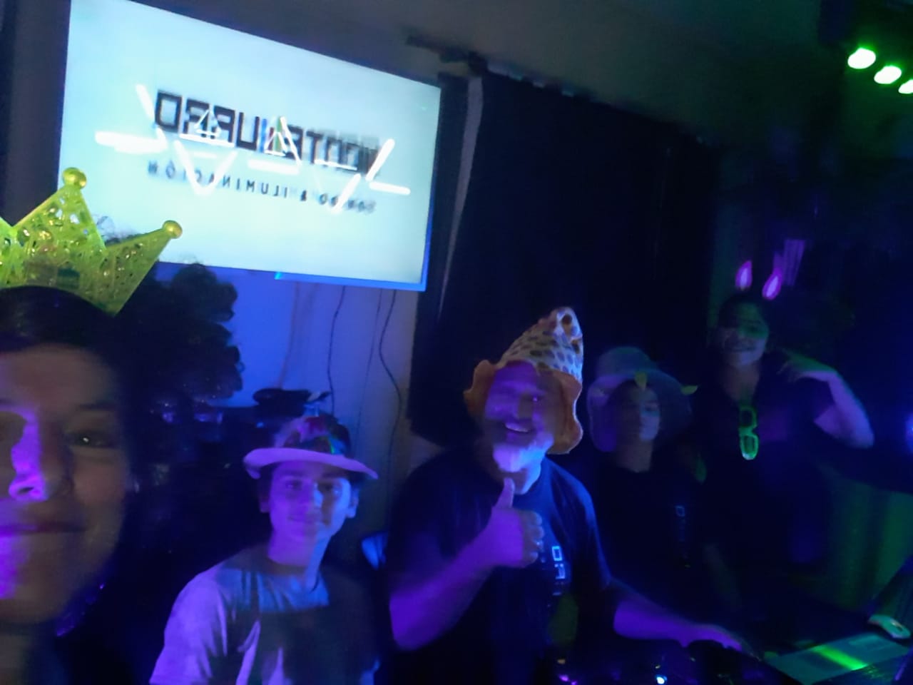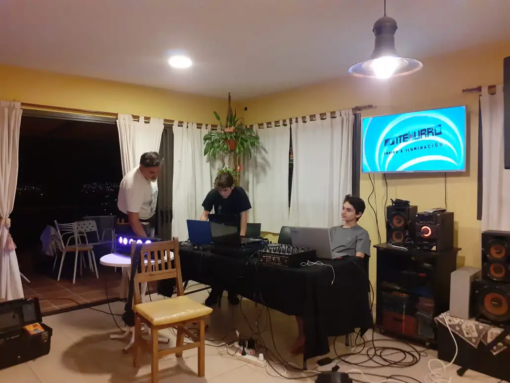 Diego Montemurro cumple la cuarentena en su casa junto a su esposa y tres hijos de 13, 15 y 17 años. Es profesor de Educación Física y técnico en sonido e iluminación. Además de ser docente, al igual que su compañera, tiene un emprendimiento familiar que brinda servicios de sonido e iluminación para eventos de distinto tipo. Tras iniciar la cuarentena y al ver que la gente en general demostraba cierto hastío al estar en sus casas sin poder salir, decidieron hacer una fiesta online “para llevar o transmitir alegría a los hogares”.