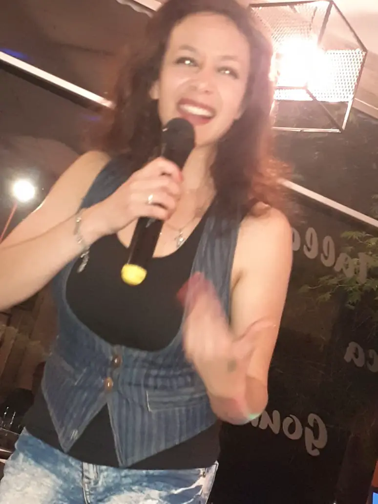 La artista interpreta canciones de diferentes géneros como cumbia, cuarteto y además, temas propios. “Compuse ‘Soltera con pileta’ y la verdad es uno de los temas que más me piden, el hit de la cuarentena en Carlos Paz”, bromeó.