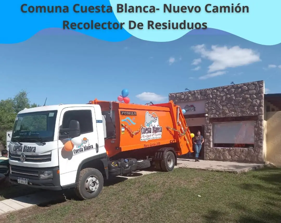 La Comuna de Cuesta Blanca a través de la nueva gestión 2021 cuenta con un nuevo camión recolector de residuos, “lo que permitirá una mayor eficacia y eficiencia en la prestación del servicio en los distintos sectores de nuestra localidad”, según expresa un comunicado oficial.