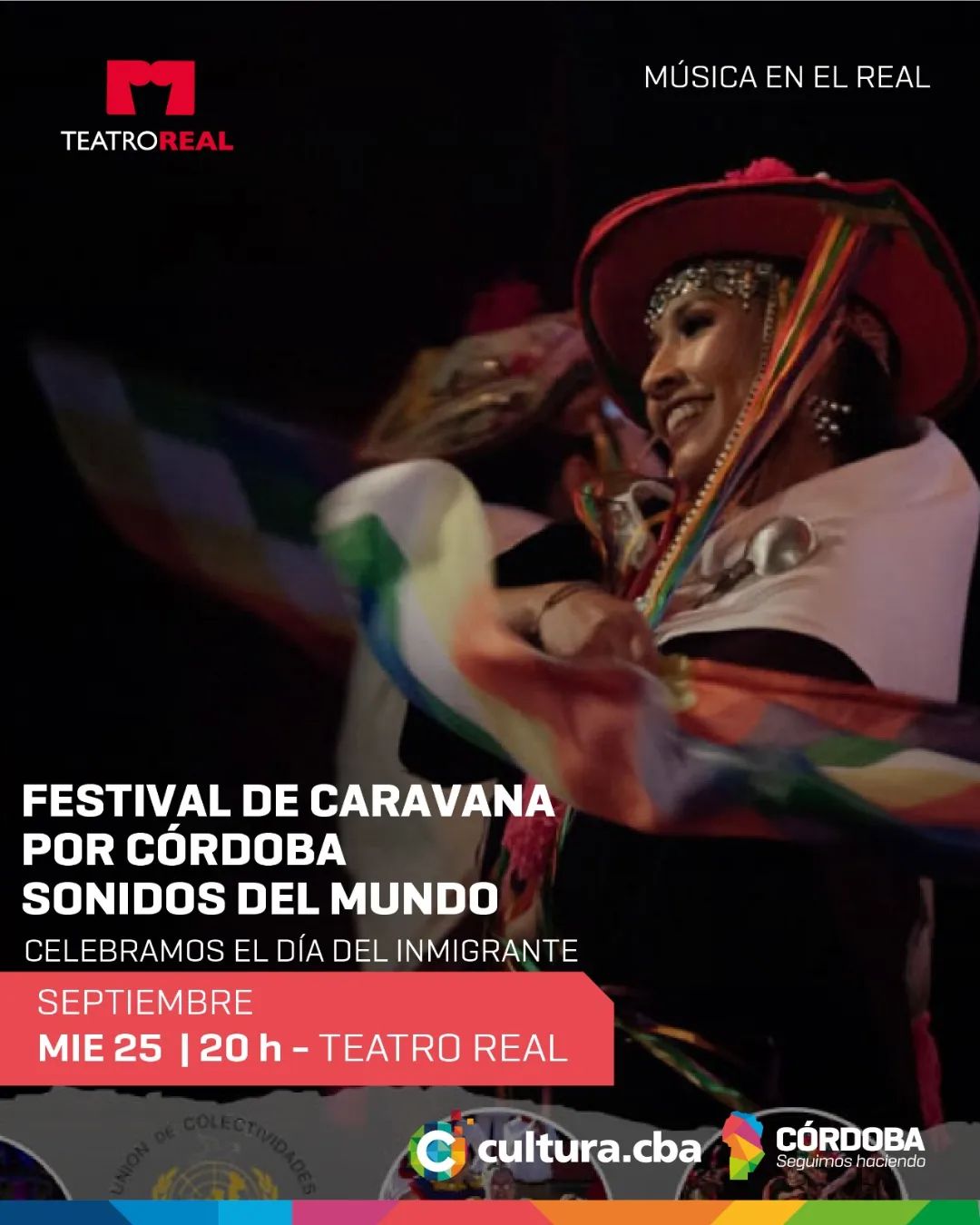 Música y Danza de distintas Colectividades de Inmigrantes de Córdoba. Espectáculo que busca contar la historia de las distintas corrientes de inmigrantes en Córdoba, desde las primeras europeas hasta las latinoamericanas a través de su danza y su música, para señalar como mensaje